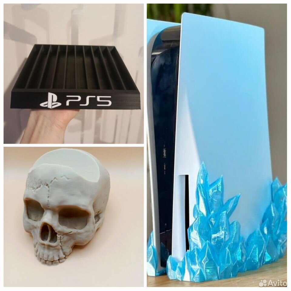 Подставка для контроллера ps5, Xbox, PC 450р Подставка для 10 дисков ps5-570р Подставка под ps5 кристалл - 1500р Напечатаны на 3d принтере из прочного и безопасного пластика Можем напечатать в любом цвете.