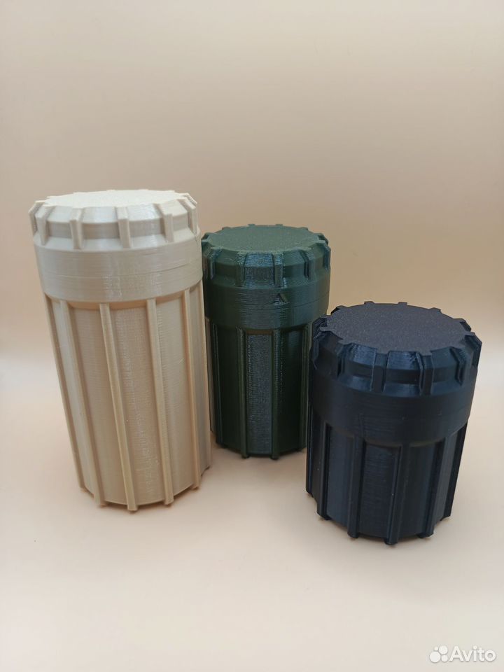 Влагозащищенные контейнеры различного размера. Напечатаны на 3d принтере. Напечатаем любого цвета и размера. На фото: Контейнер 72мм-150р Контейнер 91 мм- 200р Контейнер 112 мм -250р