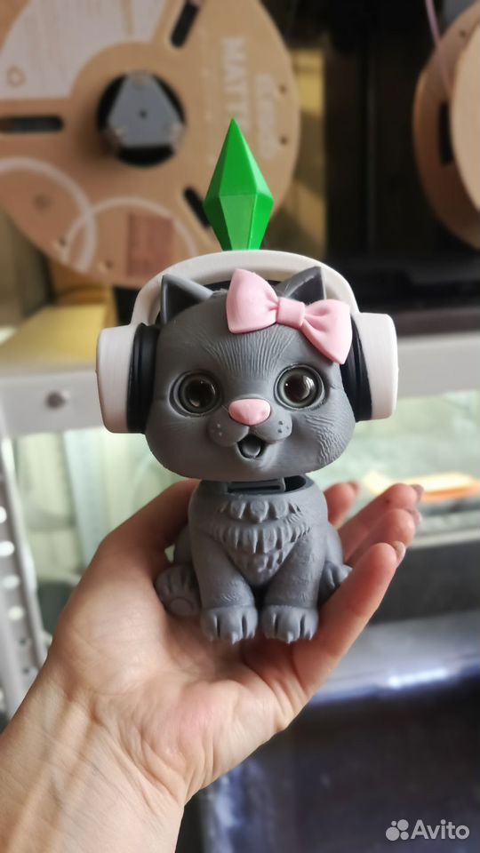 Кот с пружинкой мем: серый котик, наушники двухцвет