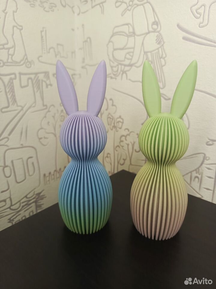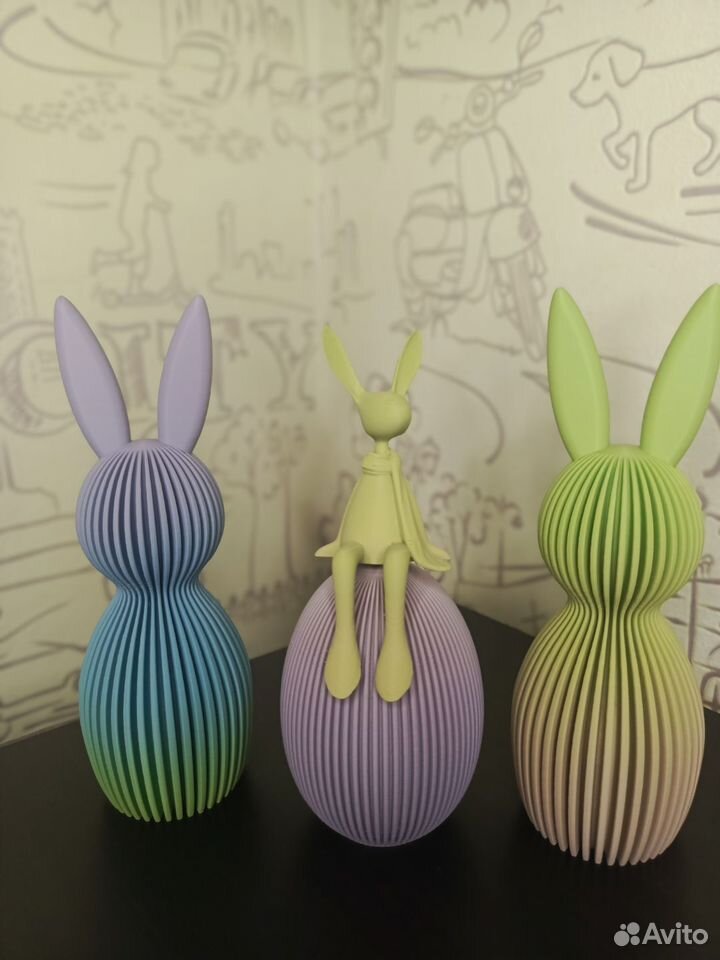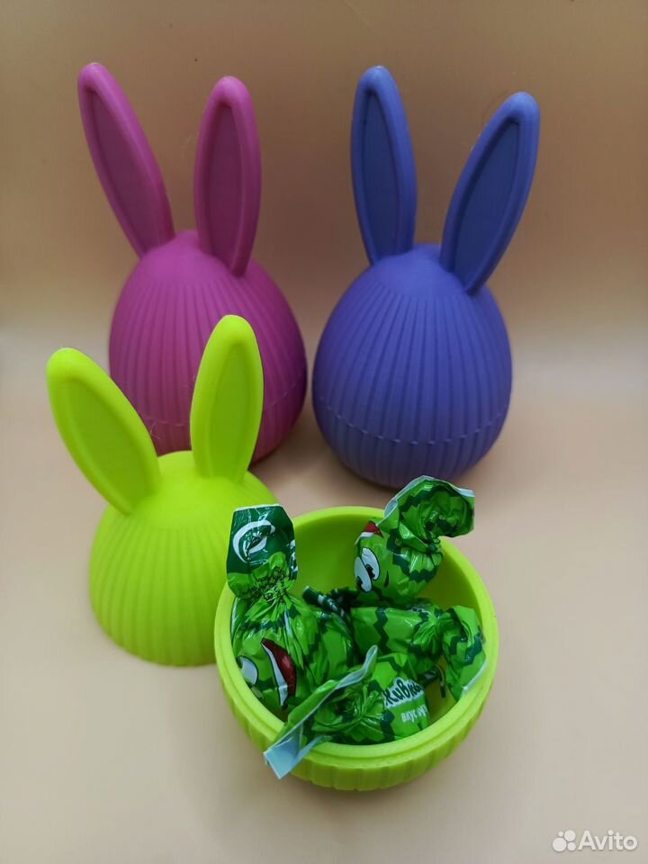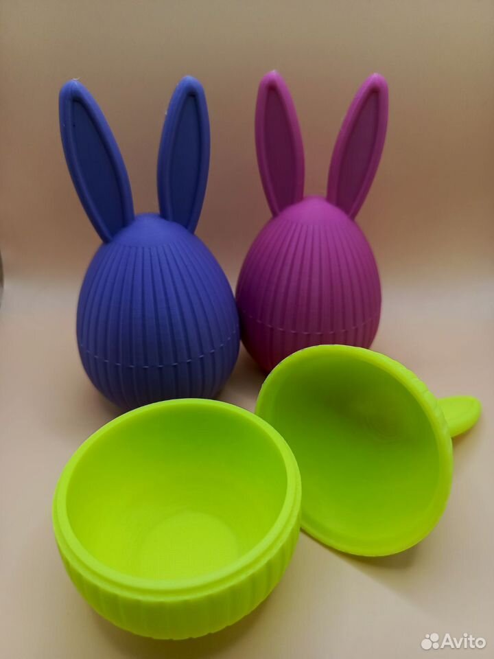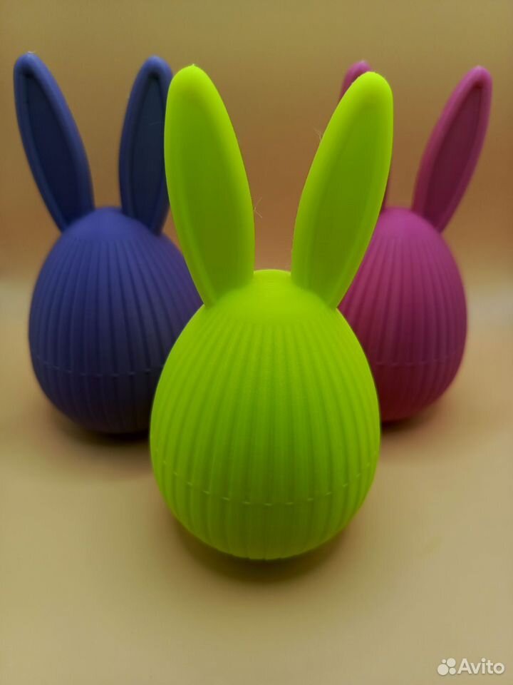 Выполнено на 3d принтере из прочного и безопасного пластика. Размер шкатулки яйца с ушками 13 см. -350 р яйцо 9 см -250 р Зайчики декоративные 16 см 450р