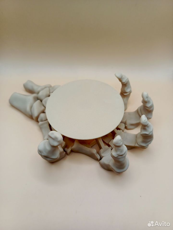 Подставка для кружки напечатана на 3d принтере из прочного т безопасного пластика. Пальцы сжимаются, когда вы поставите на нее кружку или банку. Может быть напечатана в любом выбранном вами цвете.