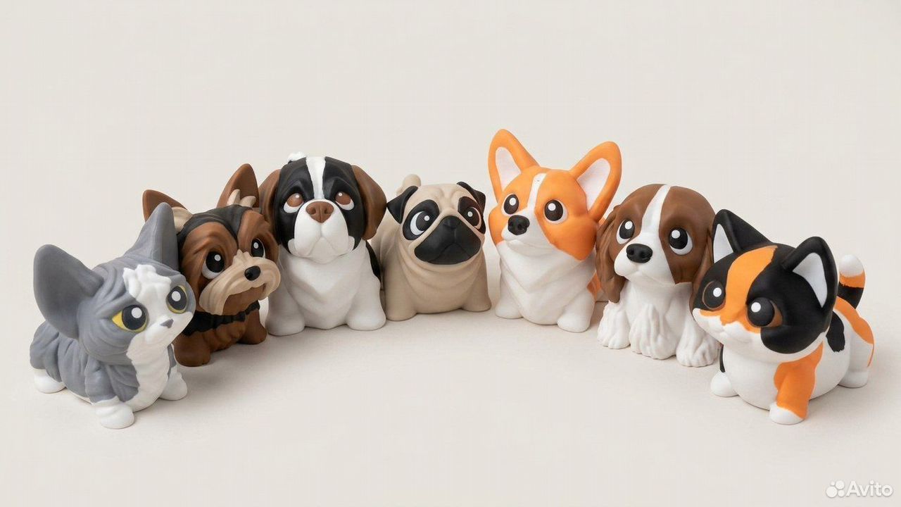 Яркие фигурки собак и кошек, напечатанные на 3D‑принтере из безопасного PLA. Подвижные тела, аккуратная многокрасочная печать — выглядят как игрушки и как декор одновременно. В каталоге разные породы и окрасы — корги, мопс, бульдог, йорк, спаниель, коротко и длинношерстные котики и др. Цена указана за 1 штуку (точную стоимость сообщу по выбранной породе и размеру). Есть также брелоки с теми же породами (маленькие, с креплением).