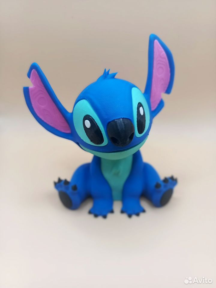 Милашка Стич напечатан на 3d принтере из прочного и безопасного пластика. Печатаем на заказ.