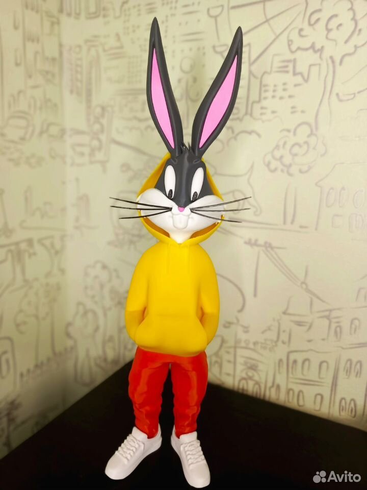 Фигурка Bugs Bunny, напечатана на 3d принтере из прочного и безопасного пластика. Высота Bunny 36 см, Daffy 27 см. Цвета штанов, худи, ботинок можно согласовать при заказе. Цена за одну фигурку!