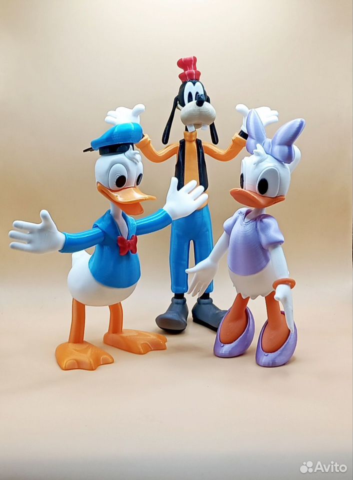 Фигурки напечатаны на 3d принтере из прочного и безопасного пластика. Дональд и Дейзи 15 см Гуффи 20 см Так же есть фигурки Скруджа и утят и много других героев.