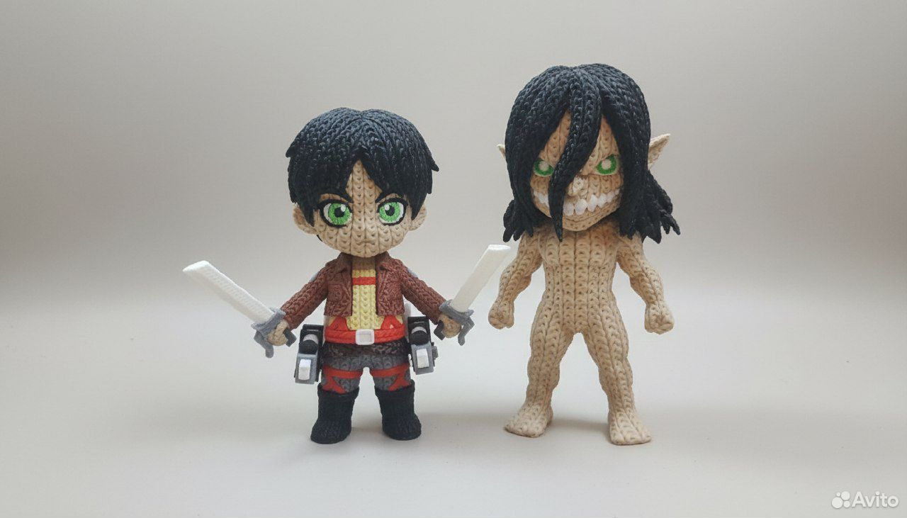 Фигурки героев культового аниме Атака титанов. Напечатаны на 3d принтере. Голова подвижная. Эрен 15 см Титан 17 см Цена за одну фигурку.