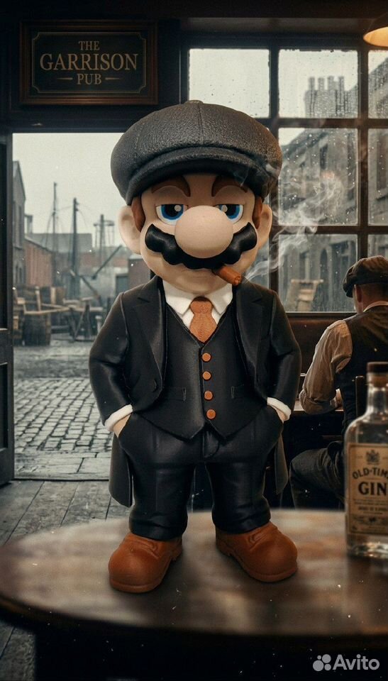 Фигурка Марио в образе Томаса Шелби из сериала Острые козырьки. Напечатана на 3d принтере, высота 26 см.