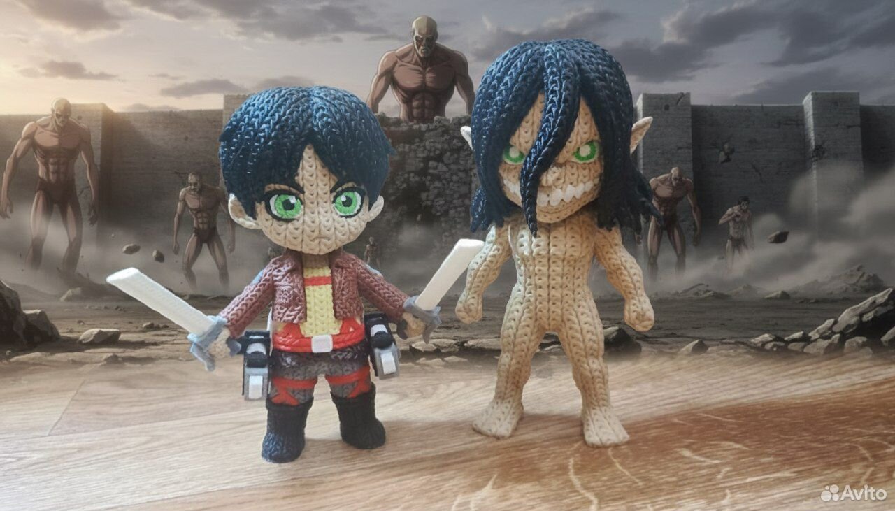 Фигурки героев культового аниме Атака титанов. Напечатаны на 3d принтере. Голова подвижная. Эрен 15 см Титан 17 см Цена за одну фигурку.