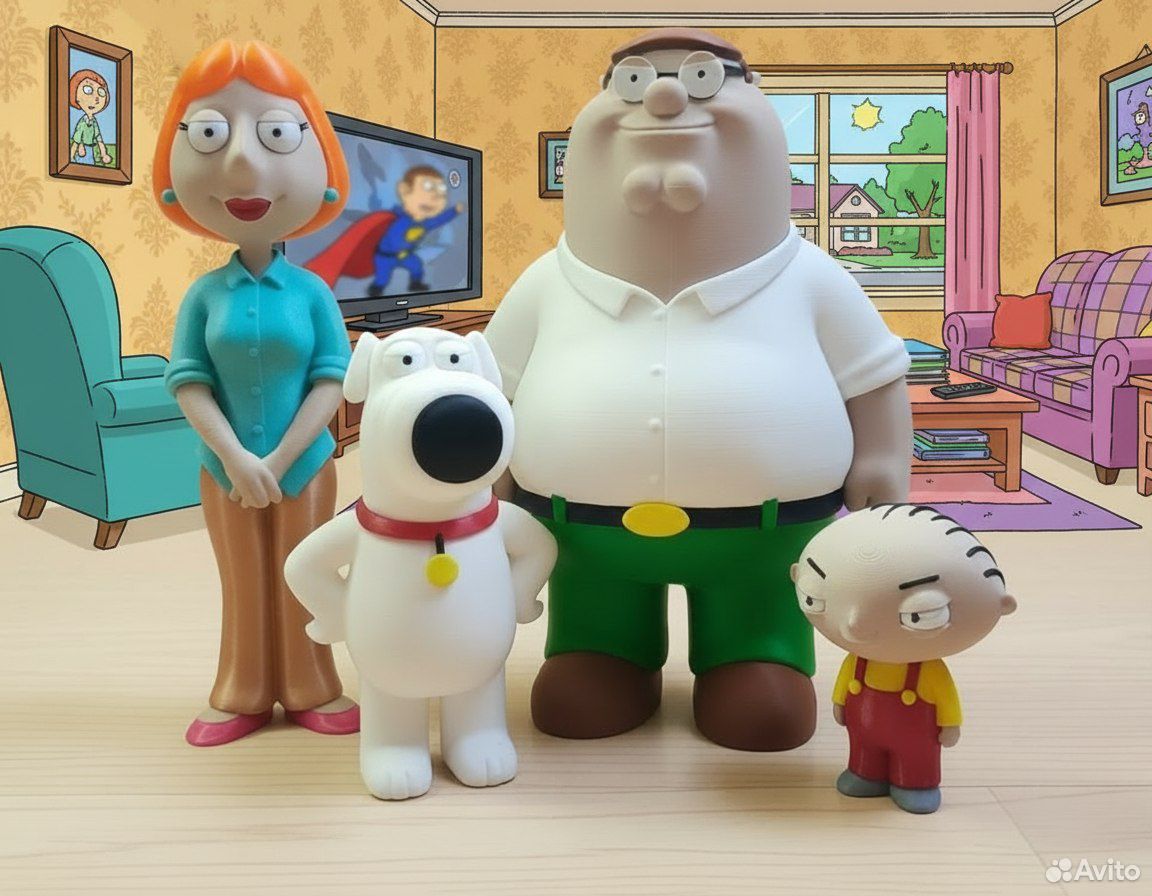 Фигурки героев мультсериала Гриффины, напечатаны на 3d принтере. Отличный подарок ценителям. Стьюи Гриффин высота 8 см цена 500р Брайан высота 13 см цена 500р Лоис Гриффин высота 22 см цена 1000р Питер Гриффин высота 24 см цена 2100р.