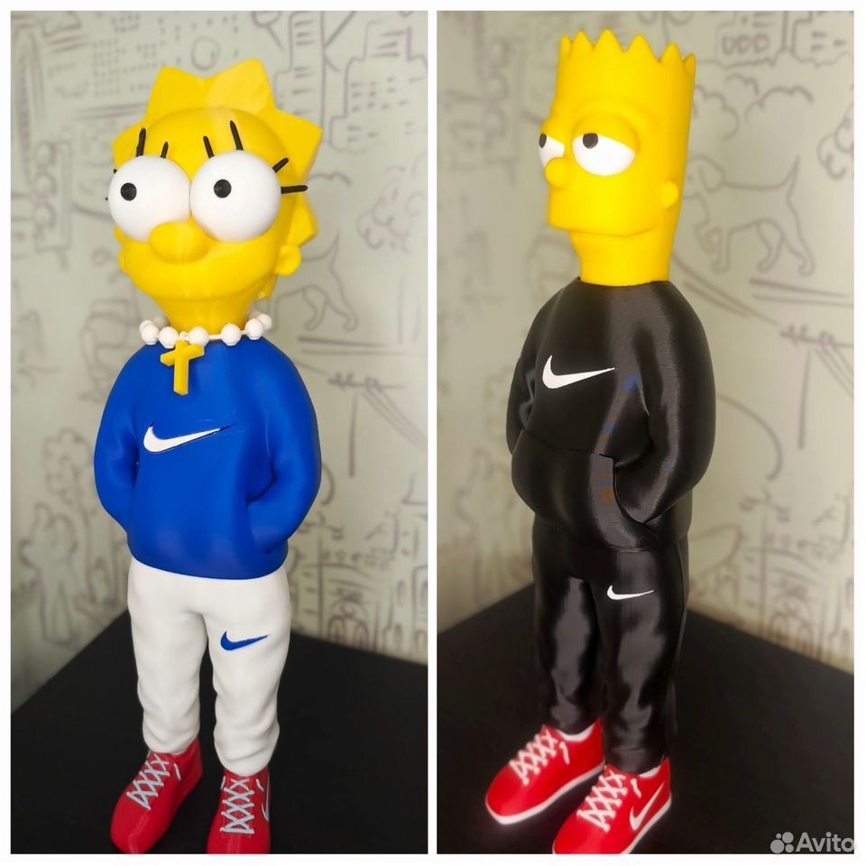Фигурки из популярного мультсериала Лиза и Барт Симпсон. Высота 32 см. Выполнены на 3d принтере из прочного и безопасного пластика. Цена за одну фигурку. Цвет худи, штанов и кроссовок можем напечатать в любом выбранном вами цвете. Так же есть фигурки Гомера , Красти и Барни.