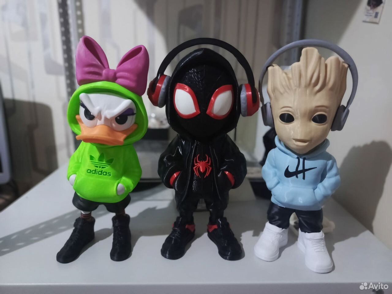 Фигурка 3D Дейзи Дак, Человек паук, Грут в худи
