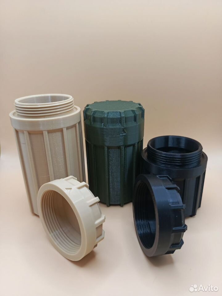 Влагозащищенные контейнеры различного размера. Напечатаны на 3d принтере. Напечатаем любого цвета и размера. На фото: Контейнер 72мм-150р Контейнер 91 мм- 200р Контейнер 112 мм -250р