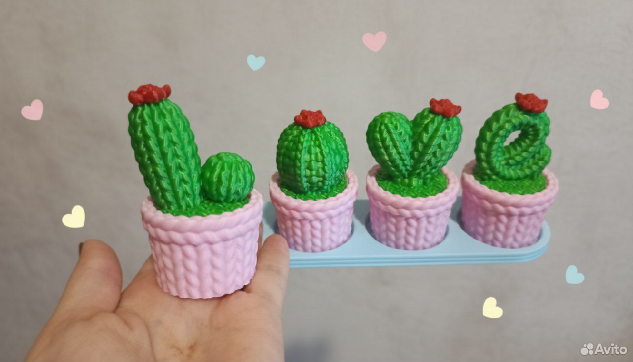 Милые кактусы в горшочке образуют слово любовь Прекрасный и необычный подарок ко дню всех влюблённых или 8 марта. Кактус в каждом горшочке снимается, можно использовать как мини шкатулочки. Длина около 20 см, высота 7-8 см. Напечатаем в любой выбранном вами цвете.