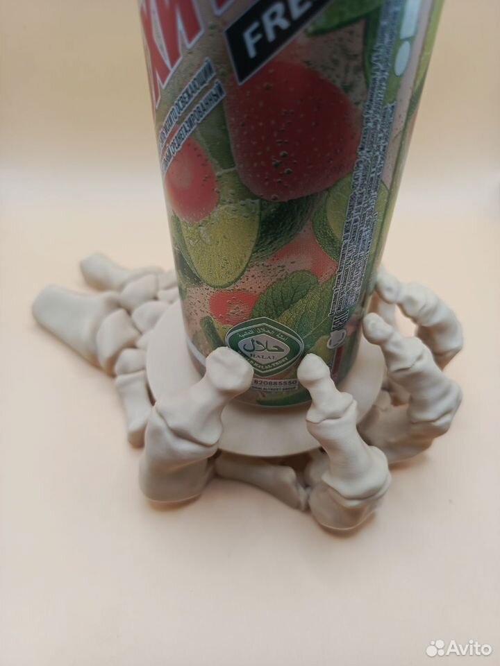 Подставка для кружки напечатана на 3d принтере из прочного т безопасного пластика. Пальцы сжимаются, когда вы поставите на нее кружку или банку. Может быть напечатана в любом выбранном вами цвете.