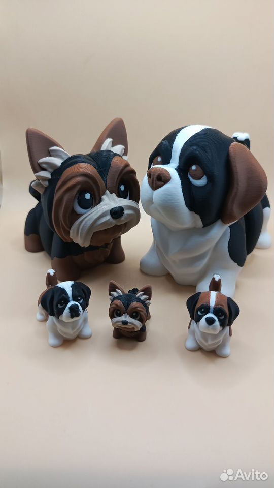 Яркие фигурки собак и кошек, напечатанные на 3D‑принтере из безопасного PLA. Подвижные тела, аккуратная многокрасочная печать — выглядят как игрушки и как декор одновременно. В каталоге разные породы и окрасы — корги, мопс, бульдог, йорк, спаниель, коротко и длинношерстные котики и др. Цена указана за 1 штуку (точную стоимость сообщу по выбранной породе и размеру). Есть также брелоки с теми же породами (маленькие, с креплением).