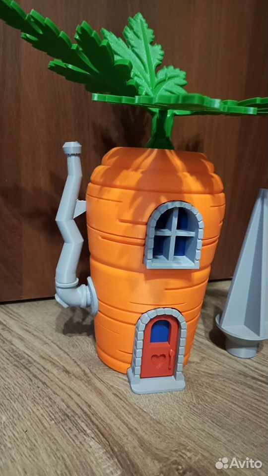 Украшения для ваших грядок Морковка домик. Напечатана на 3d принтере, высота около 30 см. Колышек крепление надежно зафиксирует морковку в земле. А яркая и красочная морковка никого не оставит равнодушным. Напечатаем и другие овощи-фрукты домики для вашего сада-огорода.