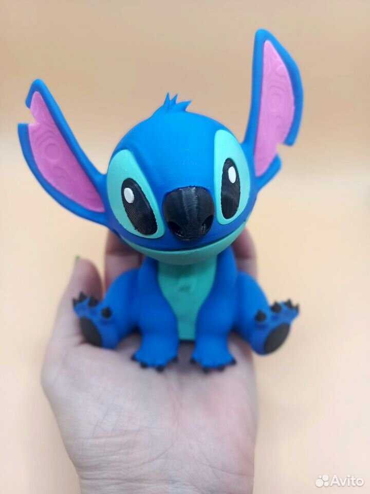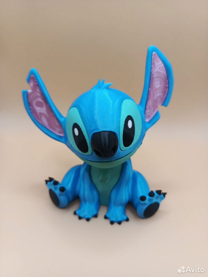 Милашка Стич напечатан на 3d принтере из прочного и безопасного пластика. Печатаем на заказ.