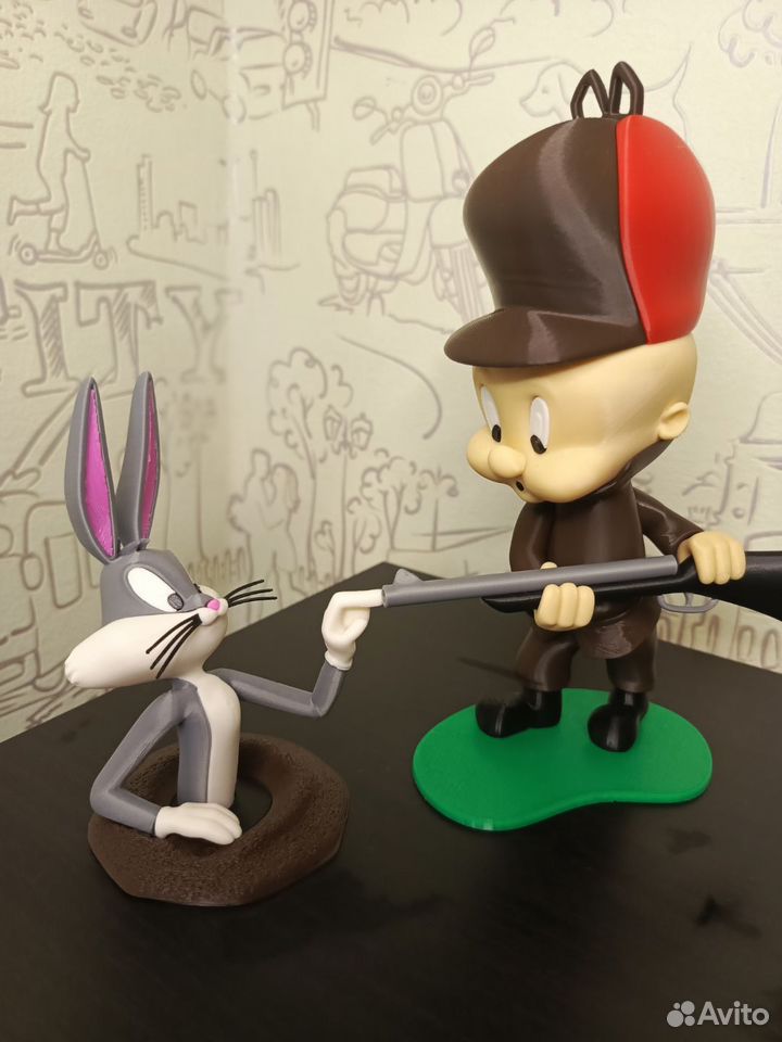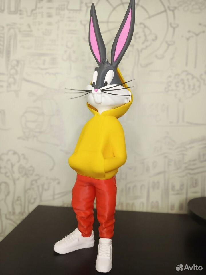 Фигурка Bugs Bunny, напечатана на 3d принтере из прочного и безопасного пластика. Высота Bunny 36 см, Daffy 27 см. Цвета штанов, худи, ботинок можно согласовать при заказе. Цена за одну фигурку!