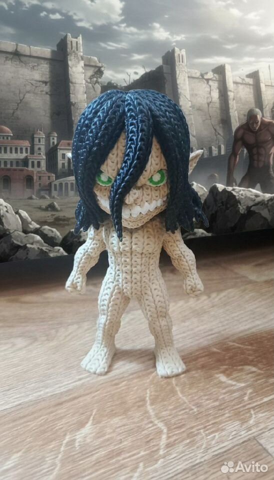 Фигурки героев культового аниме Атака титанов. Напечатаны на 3d принтере. Голова подвижная. Эрен 15 см Титан 17 см Цена за одну фигурку.